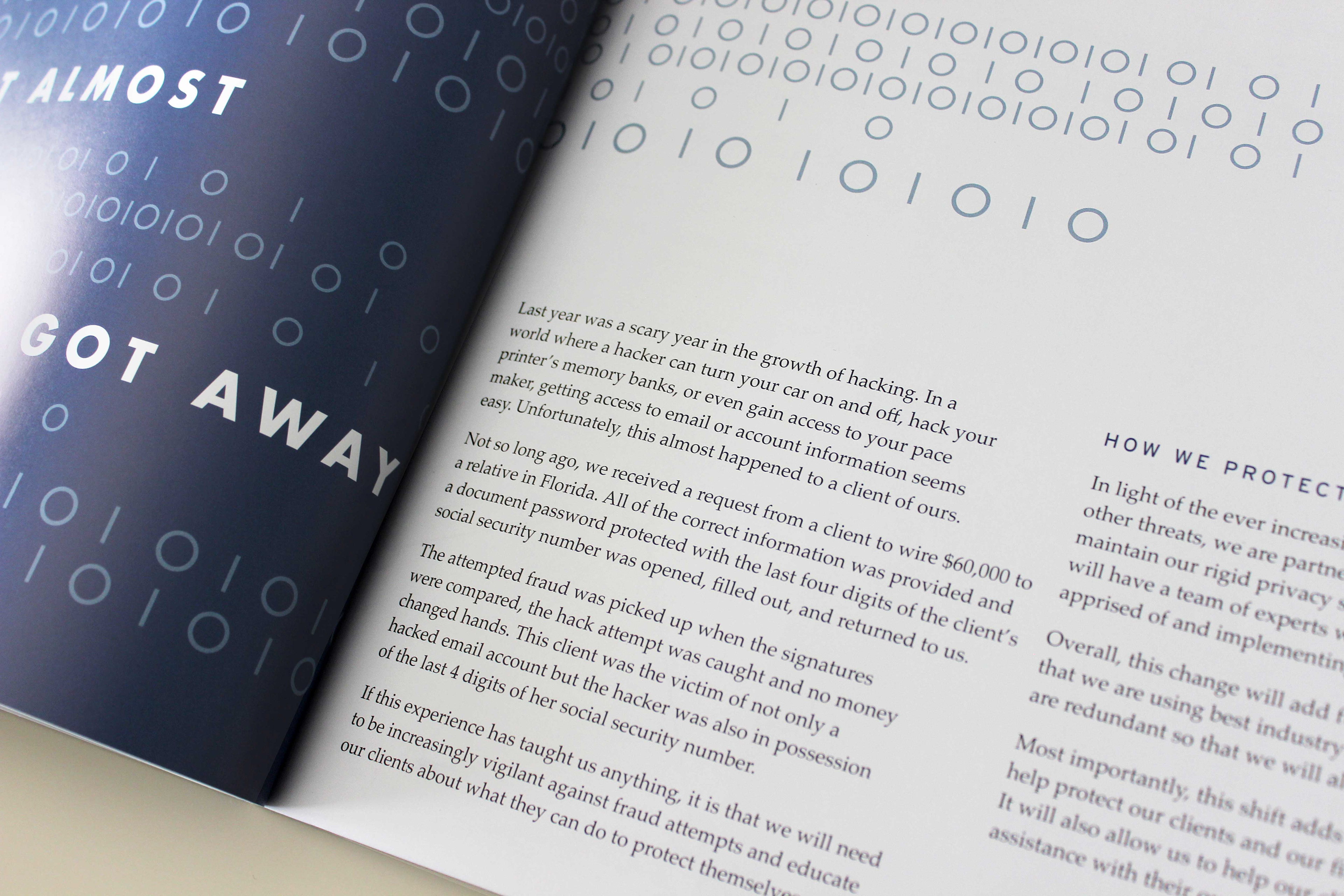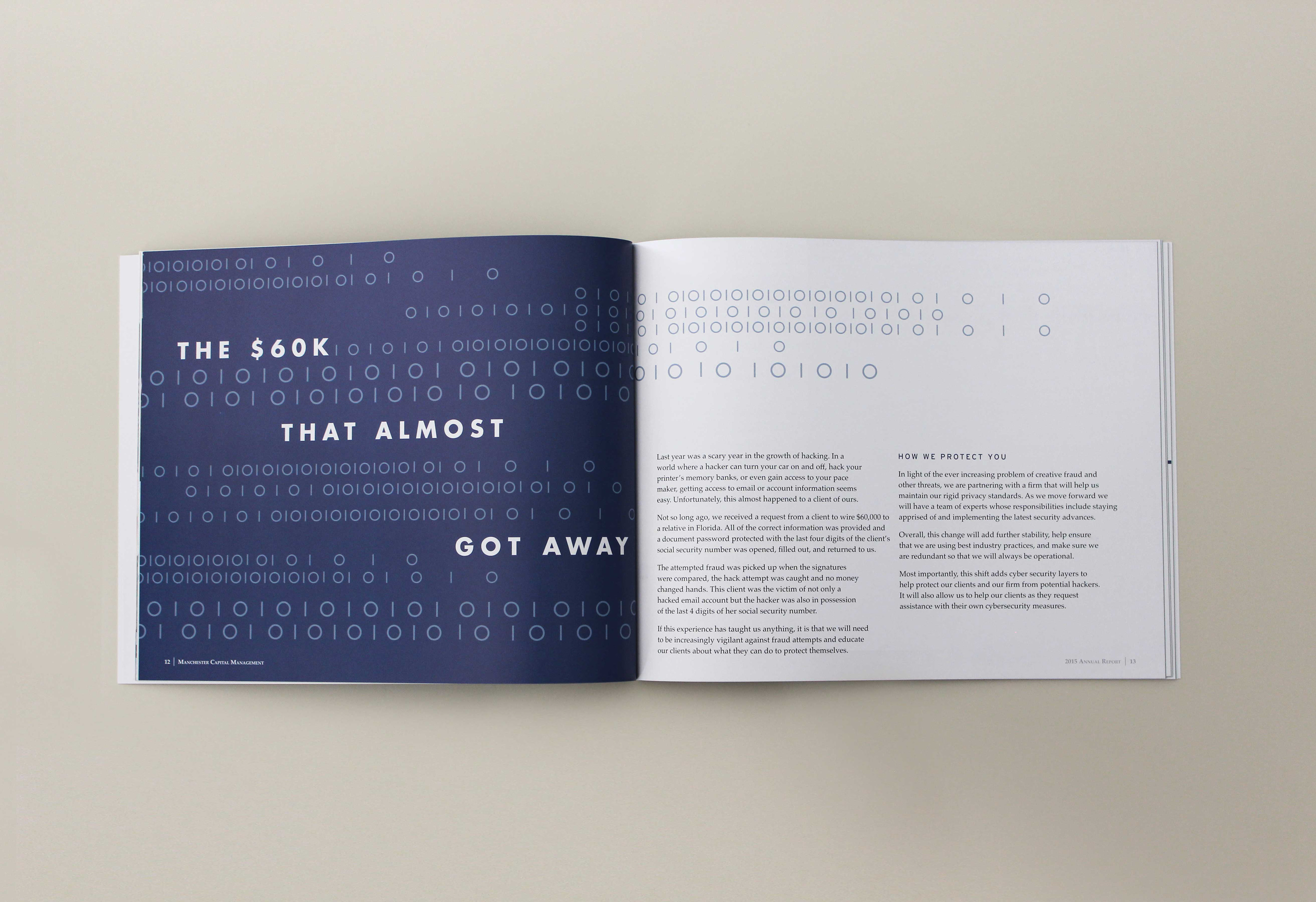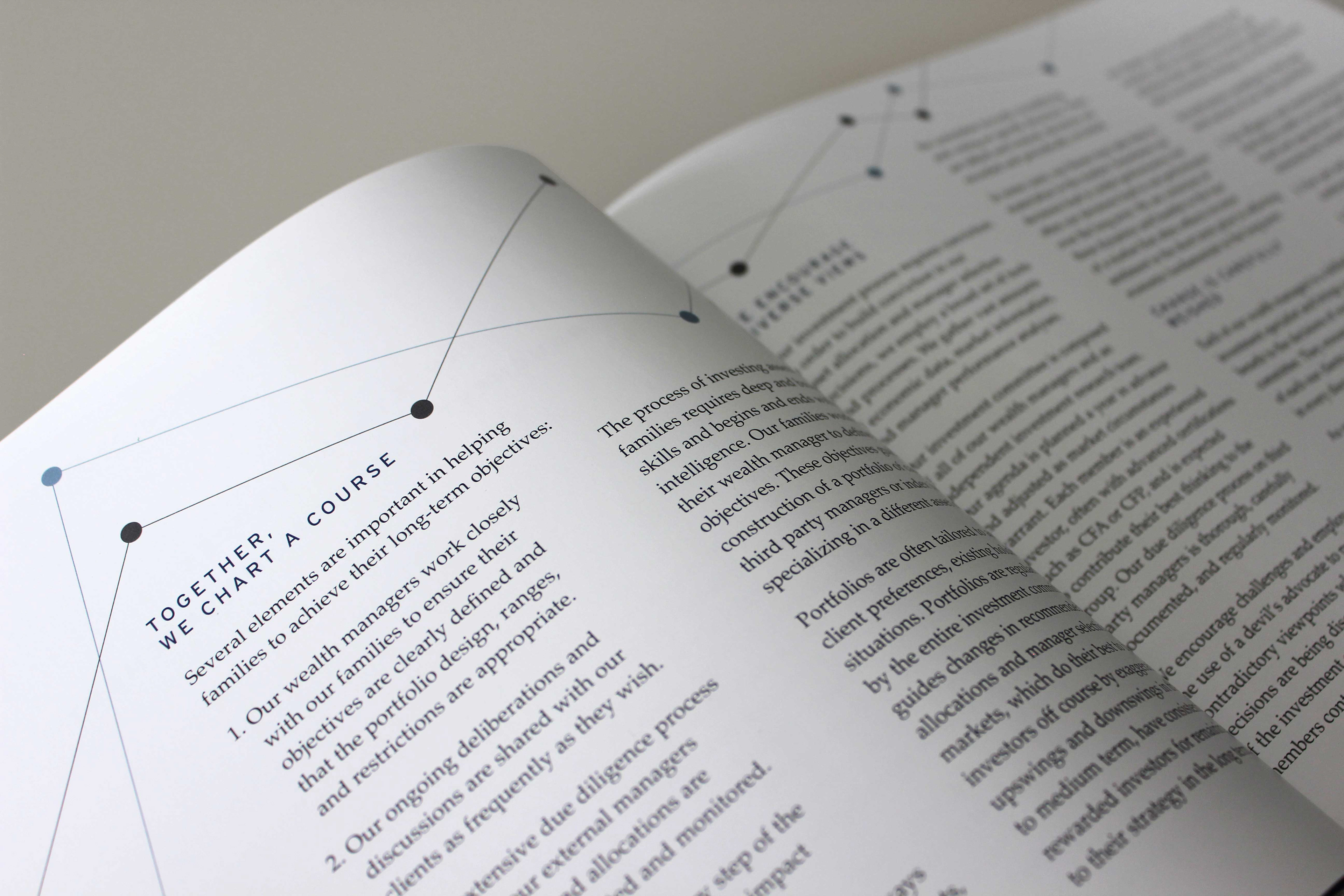 My partner and I at Curio Co. were hired to design an annual report for a wealth management firm in Santa Barbara California.